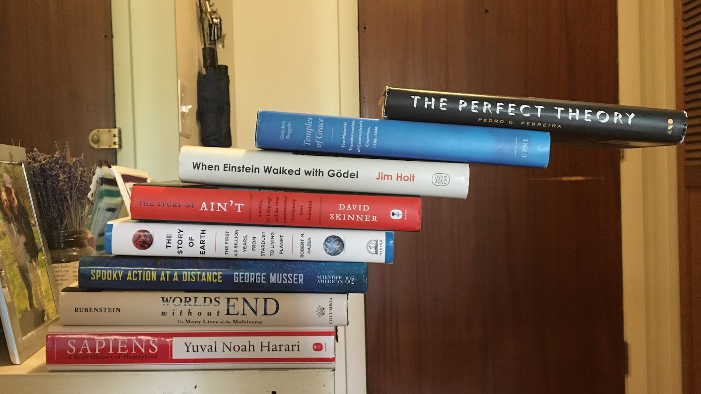 Brendan is available for engaging and educational science enrichment programs for any audience, whether in-person in Central Massachusetts or the Greater Boston area or online anywhere in the world. He is currently offering sessions on a range of science topics, including math, physics, and engineering, as well as many other general science subjects. Want your audience to learn how to make a stack like the one that tops this page where the top book reaches out infinitely far from the edge of the bottom one? Want to know how to build the same stack in a computer? Get in touch!
