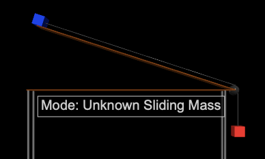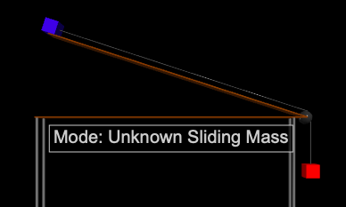 We go from something not-at-all interactive to something so interactive, it works as a lab for remote students (or those who could use a little reinforcement). Indeed, I wrote it for just that purpose! This simulation has options for making unknown the masses or coefficients of friction involved in the simulation, along with graphing options so that students can calculate the values for themselves – with or without simulated experimental errors. If you are an educator using this for a class and you would like to know the unknown values, please get in touch! Or dig into the code. They’re less hidden in this one than in the next one. (One word of warning: Different web browsers seem to graph slightly differently, so the graphs are not 100% repeatable.)